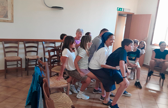 Questi incontri sono stati proposti e guidati da noi suore. In questi due giorni insieme con loro abbiamo parlato del tema dello Spirito Santo: chi è lo Spirito Santo e qual è la sua azione. Abbiamo iniziato l’incontro con un canto, con il gioco della conoscenza, lanciando un gomitolo per creare il filo dell’amicizia. Poi, abbiamo ascoltato la lettura del giorno di Pentecoste e insieme abbiamo invocato lo Spirito Santo in cinque lingue diverse (Portoghese, Indonesiano, Inglese, Italiano e Spagnolo). Abbiamo parlato anche della vita di San Carlo Acutis come modello di vita giovanile per i ragazzi partendo dalla sua famosa frase “TUTTI NASCONO ORIGINALI, MA MOLTI MUIONO COME FOTOCOPIE”.